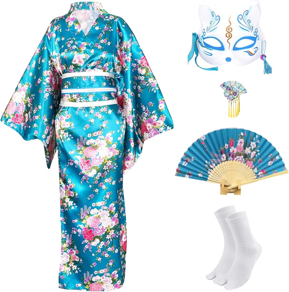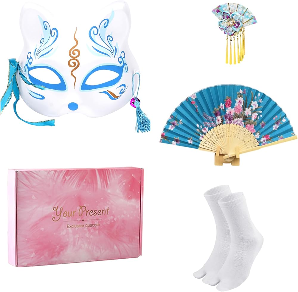 1*Kimono,1*Hairclip,1*Fox Mask,1*Hand Fan,1*Socks(5pcs)