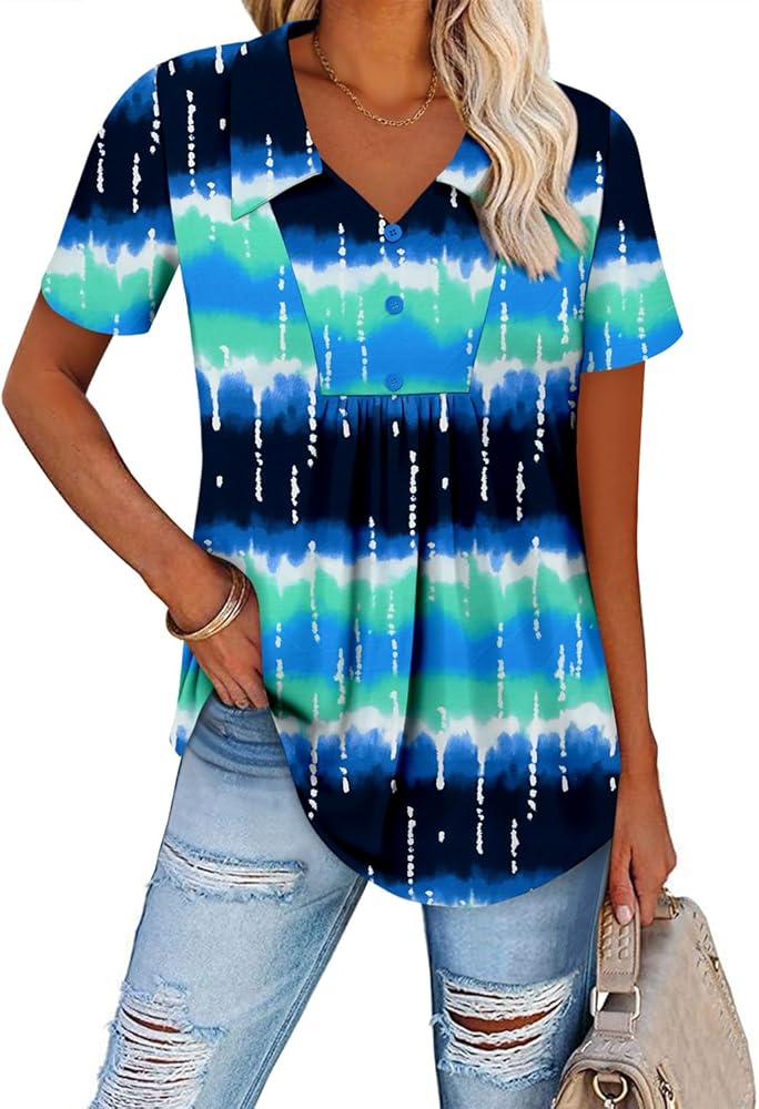 Features: Short Sleeve Tops for Women V Neck with Pleated Design,Solid Color and Floral Print, Cute and Comfortable