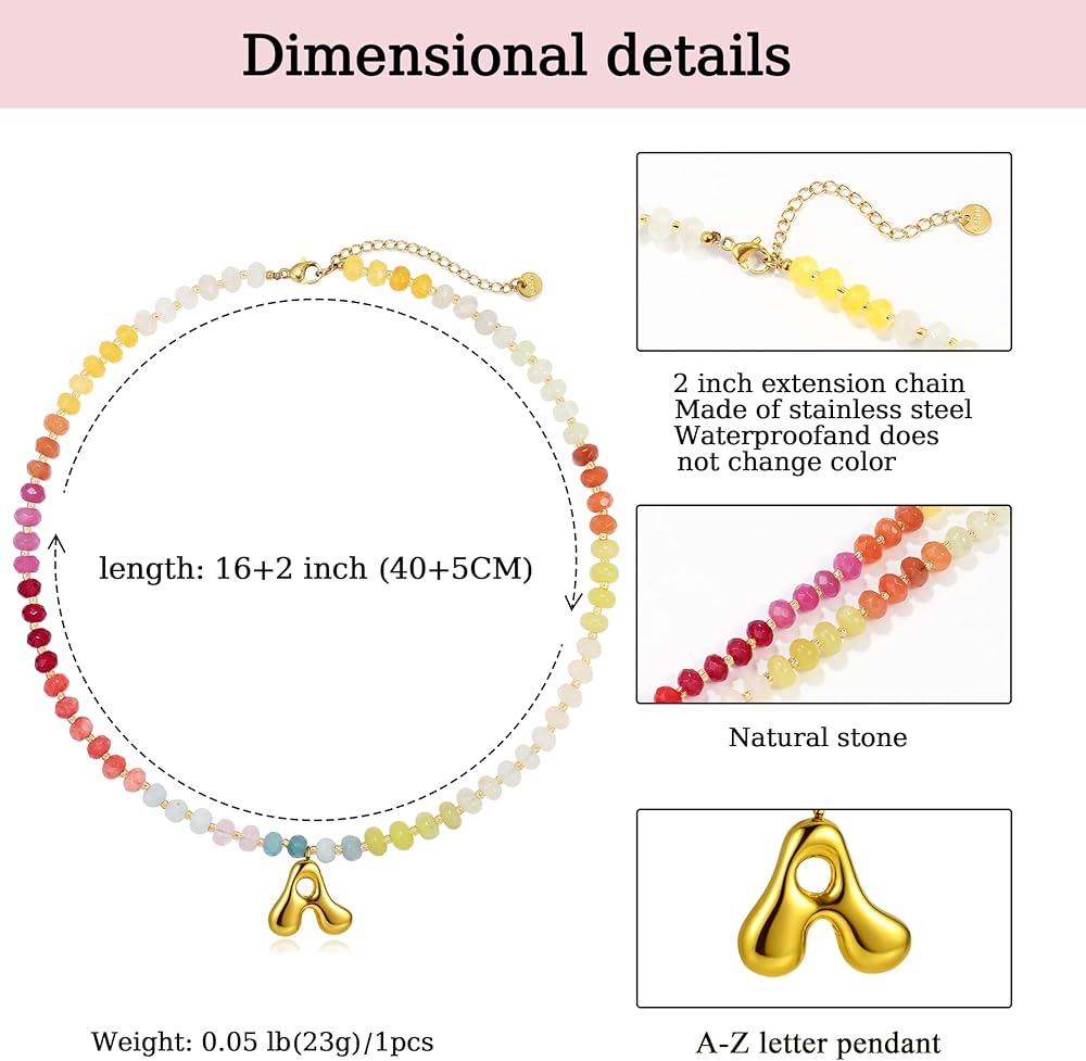 Badu Initial A-Z Colorful Beaded Gemstone Necklaces for Women 14K Gold Letter Pendant Necklace Natural Stone Summer Beach Handmade Jewelry Gift Trendy Necklaces