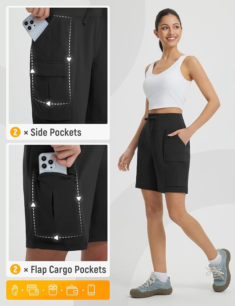 4 Pockets: With four large pockets, these women's hiking shorts have a larger capacity for storage and adapt to a variety of environments.