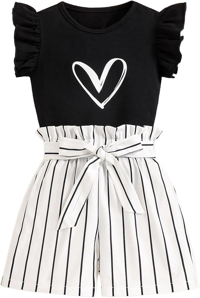 FEATURES: Made to match, this girls' clothing sets is complete with a cozy heart graphic tee and a pair of pull-on paperbag shorts for an adorable and sweet look