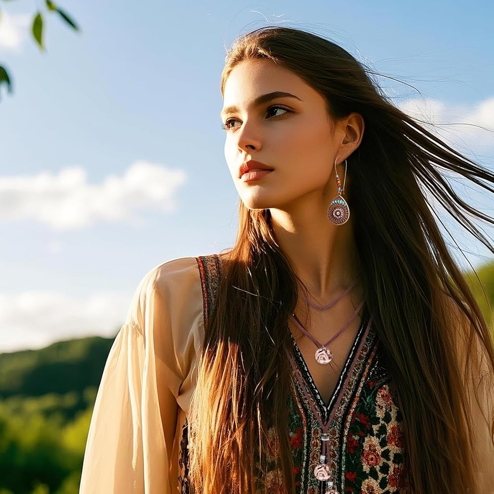 Charm: The unique design and exquisite details make this hippie jewelry set an excellent item to show your personality. The personalized pendants on the necklace, the unique textures on the bracelet, and the tassel decorations on the earrings can all add highlights to your overall look, making you stand out in the crowd and showing your unique fashion taste and personal charm.