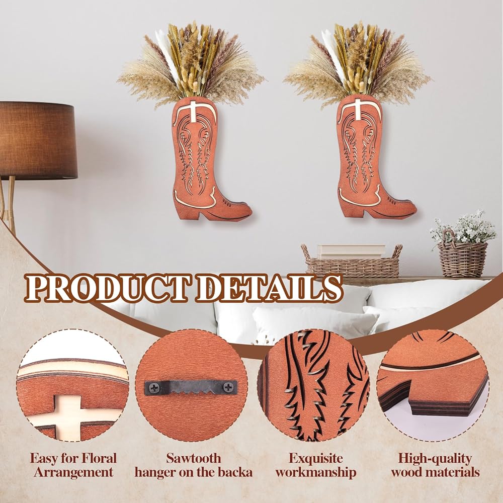Great Gift: The cowboy boot vase very suitable for people who love boho or western style . this is the ultimate creative present for your friends, also be a great housewarming gift.