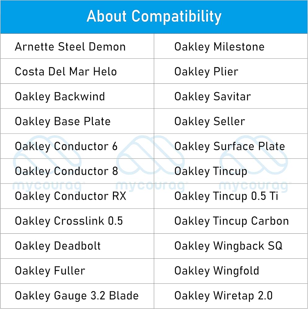 100% fit for Oakley sungalsses and eyeglasses Lizard 2, Sobriquet, Conductor 6, Conductor 8, Conductor RX, Crosslink 0.5, Fuller, Base Plate, Seller, Savitar, Tincup, Tincup Carbon, Tincup 0.5 Ti, Wingfold, Gauge 3.2 Blade, Surface Plate, Wingback SQ, Wiretap 2.0, Milestone, Plier, Deadbolt, Backwind; for Arnette Steel Demon; for Costa Del Mar Helo etc.
