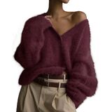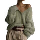 Features: Women's mohair cardigan adopts a fashionable deep V-neck design, adding a touch of elegance as a whole, the furry touch provides warmth in the autumn and winter season, the oversized loose style provides the ultimate comfort, and the low-shoulder solid color button cardigan makes it a versatile single product