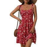 【Comfortable Fit】This sun dress features adjustable tie straps and stretchy fabric, ensuring a comfortable fit for women of all body types, whether full-figured or petite. The high-waisted, A-line design helps conceal the tummy, providing a flattering silhouette. The mini length is also perfect for smaller frames.