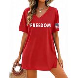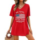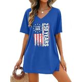 Women American Flag Dresses Patriotic USA Flag Tees Shirt 4th of July V Neck Beach Swimsuit Coverup
