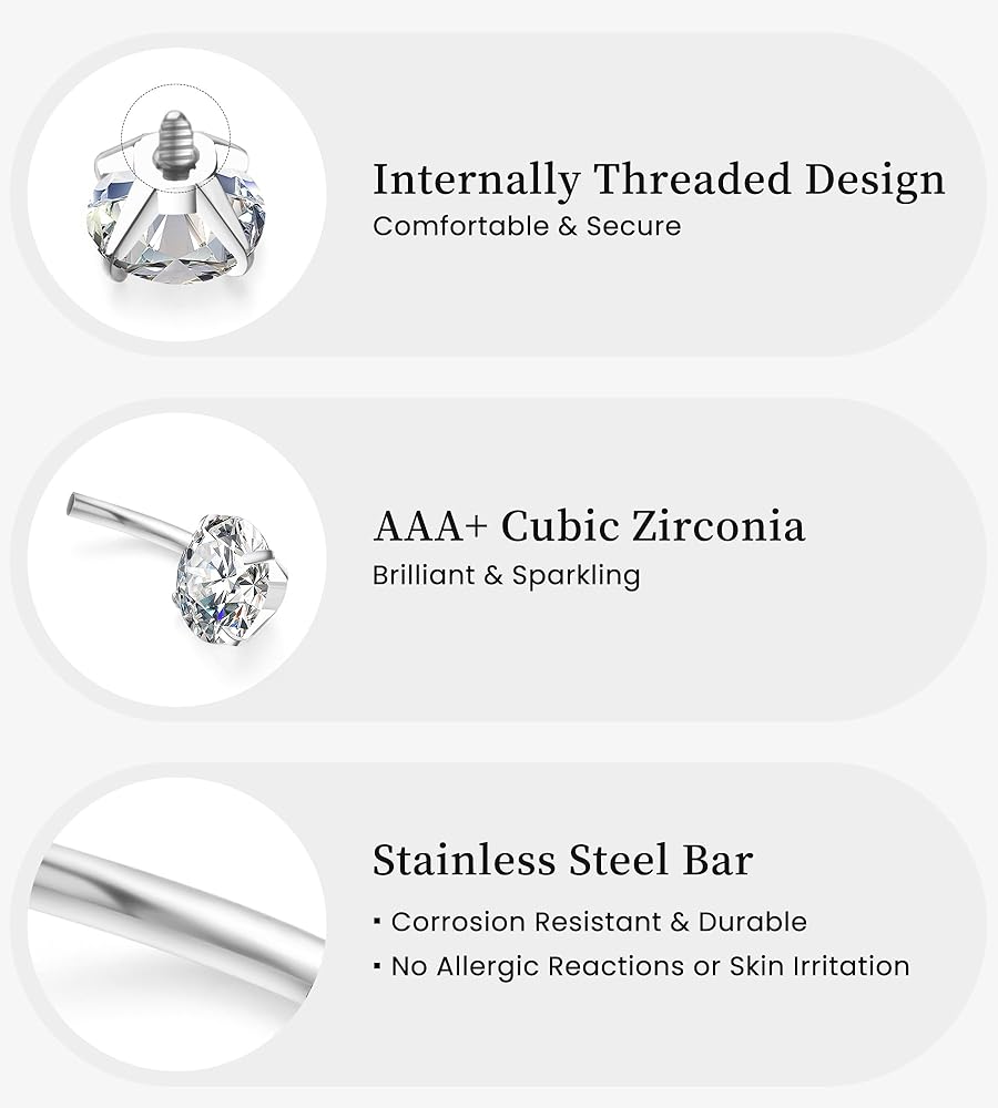 Hypoallergenic Belly Button Rings: Stainless steel belly button rings bars, solid and durable, no rust or discoloration, suitable for long-term wear