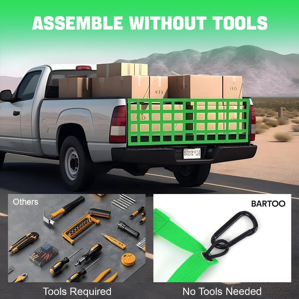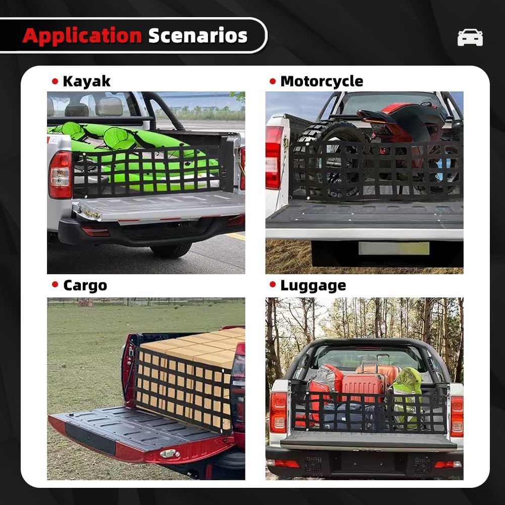 【Easy To Install & Remove】Tool-free installation and removal. Simply install the four snap hooks onto the anchors on your truck's tailgate. NOTE: Our full-size truck tailgate net requires a retaining anchor on the tailgate. It is ideal for truck bed and tailgate accessories.