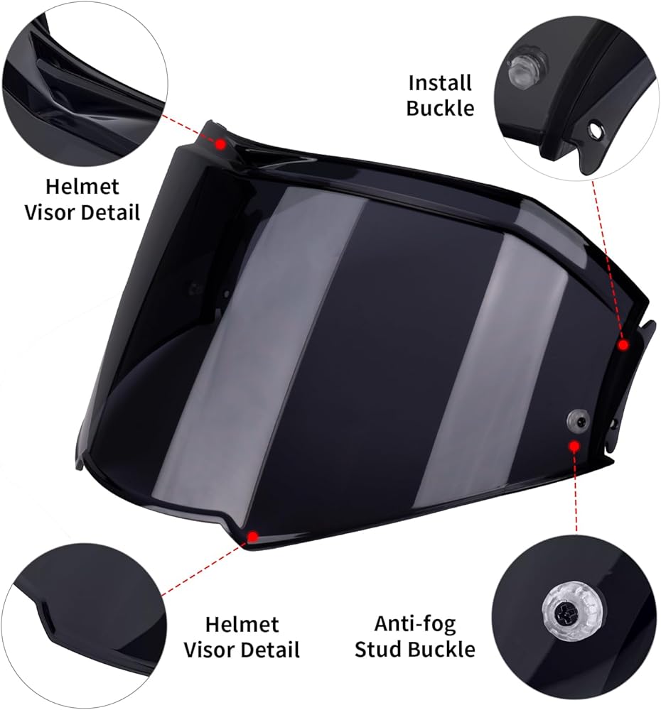 【Material】Motorcycle helmet shield made of high-quality PC (polycarbonate) material.Anti-scratch, UV-Protected