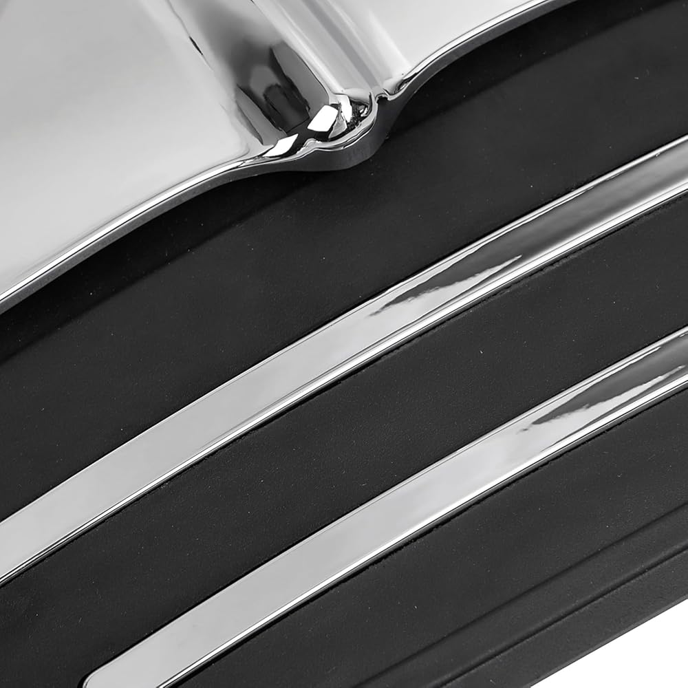 The mud flaps reduce road spray from the rear tires and add style to your motorcycle. Made rom durable, yet flexible, rubber contrasting with black trim to match the lines of the rear fenders. Secure, bolt-on design installs quick to get you on the road in no time.