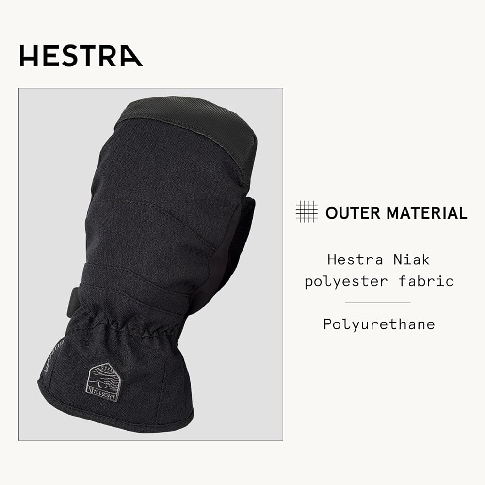OUTER LINING: The backhand is made of a wind, waterproof and breathable Hestra Niak polyester woven fabric. This helps keep cold air out, while allowing your hands to breathe. Palm is made of durable PU.