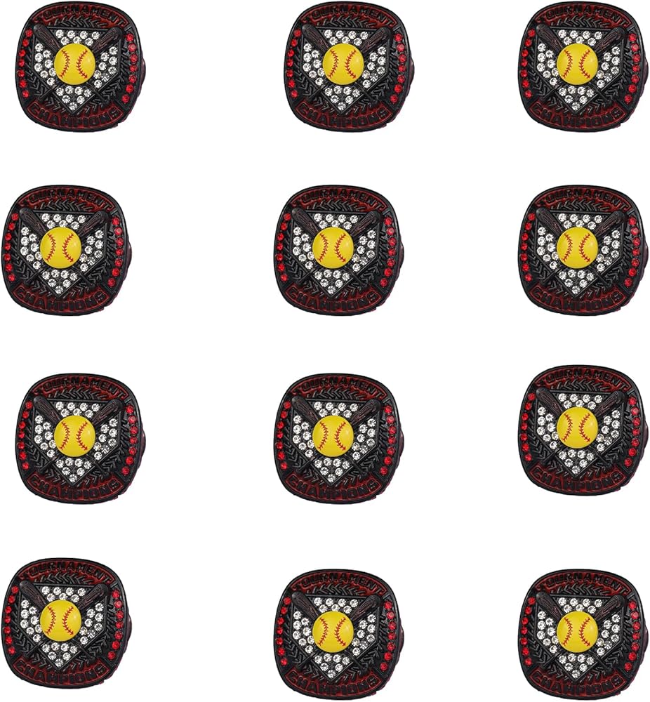 1. Ring made of zinc alloy 2.Good quality prize for softball tournament 3.Good gift for softball players 4.Ring diameter is around 19.5 mm. 5. It is a big and heavy ring , ring weight around 0.13 LB, top size is around 12*12 in. 6. Each riing comes with a velvet bag,Random color bag. 7. 12 pcs pack