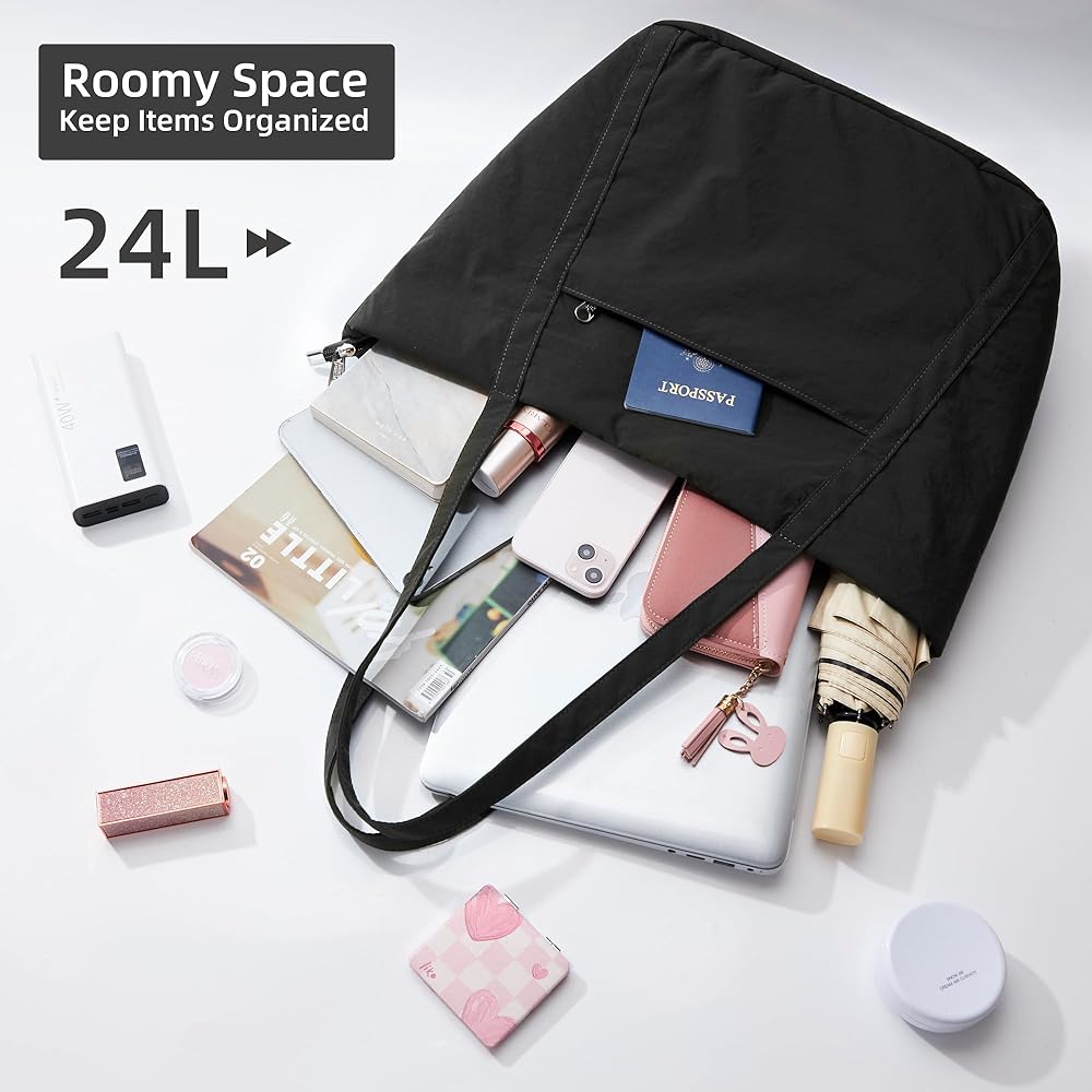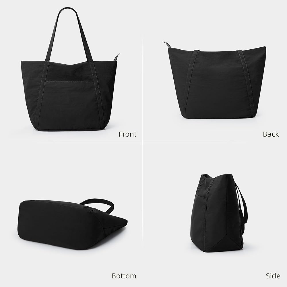 CASUAL SHOULDER TOTES: Designed in simple solid color with 4 colors available. The casual style never goes out of fashion, can be easily matched with any outfit. Reinforced shoulder straps add durability to the nylon tote bag.