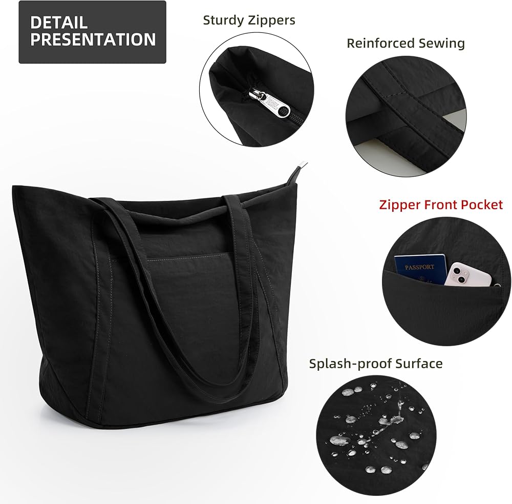 MULTIPLE COMPARTMENTS: Top zip closure with multiple pockets inside and outside, providing a reasonable space layout to keep your belongings safe and organized. Front zippered pocket is great for quick access to items. Our tote bag makes every outing more convenient!
