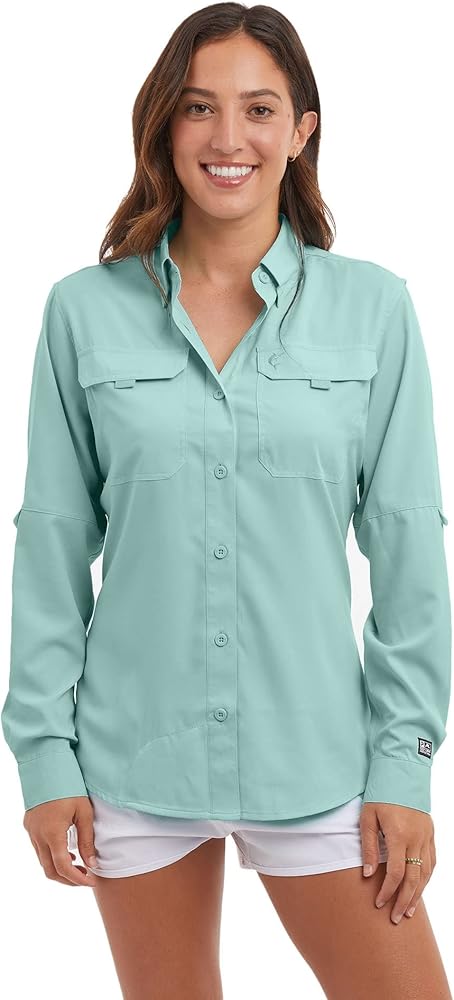 The Keys woven is perfect for warm days on the water. Featuring 50+ UV protection, ultralight quick dry 2-way stretch recycled fabric with PFAS free water and; stain repellency and strategic ventilation for airflow. 50+ UPF Protection Ultralight Fabric 2-Way Stretch Water and; Stain Repellent Recycled Fabric Attached lens cleaner cloth on inner left flap Material: 100% Recycled Polyester Model Measurements: Wearing: XS Height: 5'5" Bust: 34A Waist: 25" Hips: 35.5"