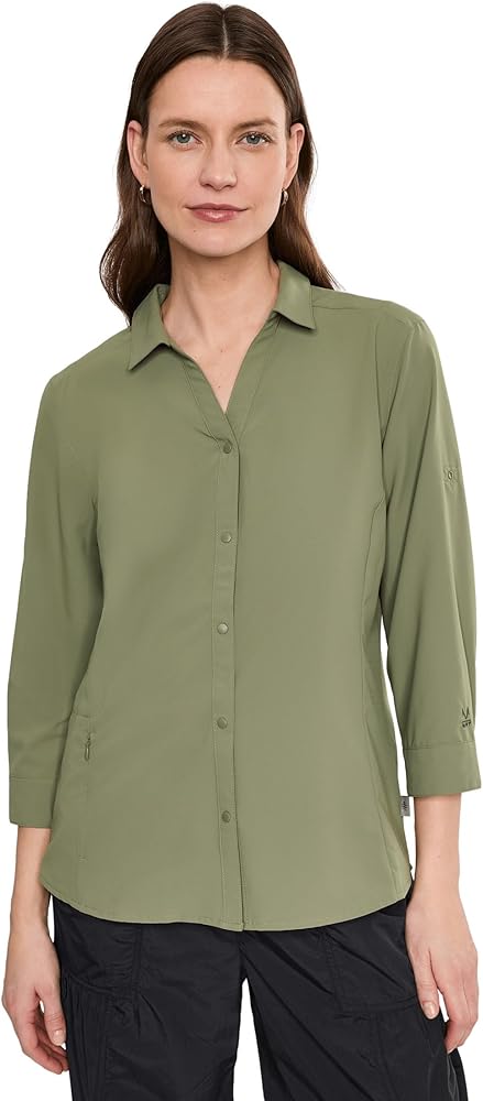 Shirttail hem, split neck collar, and princess seams add to a feminine look and fit Cuffs can be rolled and secured with a tab Bluesign-approved recycled fabric: materials and production minimize the impact on people and the planet"