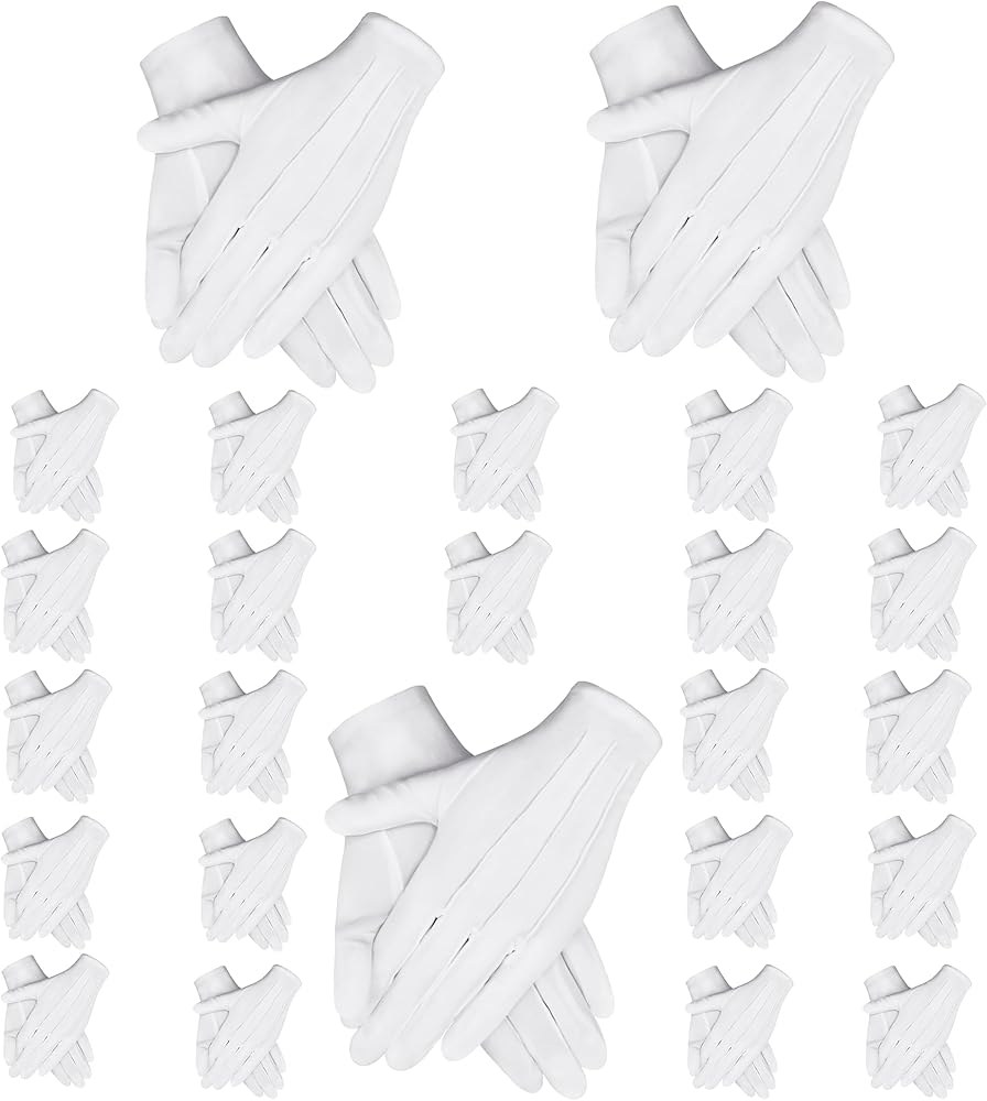 QUALITY FABRIC: These white gloves men are made of high quality nylon fabric, soft and breathable, touch and wear comfortable, durable enough and long-lasting, reusable and washable, and won't hurt your hand skin