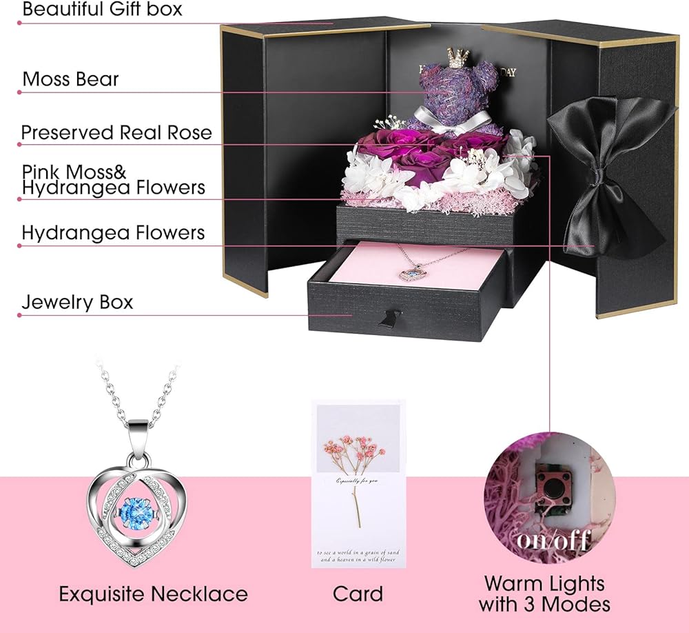 Gift Package & After-Sale Service: Preserved roses and love necklace are well wrapped in the gift box, so that you could give directly without spend time on package. As an exquisite luxury gift, it can also store other jewelry. The necklace can be worn, and the rose box can be placed indoors as an ornament. If there is any problem with our product, don't hesitate to contact us as soon as possible