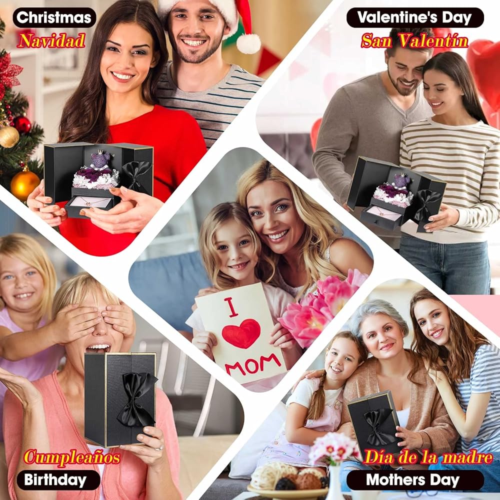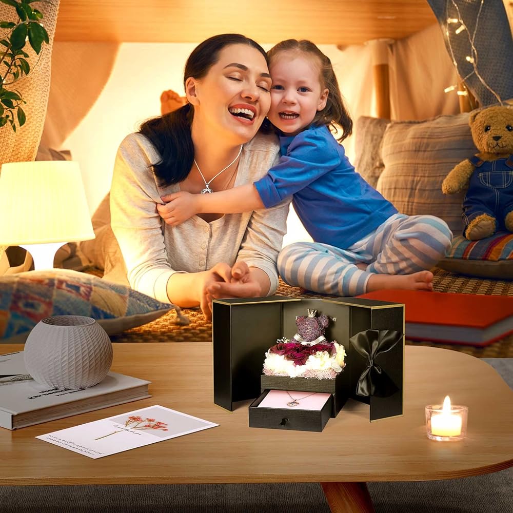 Regalos únicos para mamá: Este encantador regalo de Amor es un regalo único y genial para tu mamá o madre en ocasiones especiales como Navidad, Día de la Madre, Día de San Valentín Acción de Gracias o aniversarios. Las rosas rojas preservadas simbolizan el amor eterno y hacen de este un regalo de cumpleaños significativo también