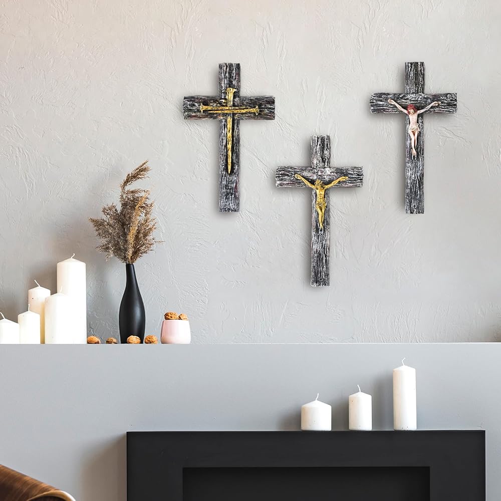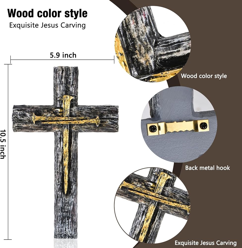 NCPLYGOU Crucifix Wall Cross, Catholic Cross for Wall with Metal Hook, Layered Wood Like Resin Crosses Wall Decor for Church Office Home Baptism, Jesus Wall Art Christian Gifts