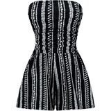 Design: Strapless, tube top, off shoulder, sleeveless, solid color or floral print, stretchable short jumpsuit for casual