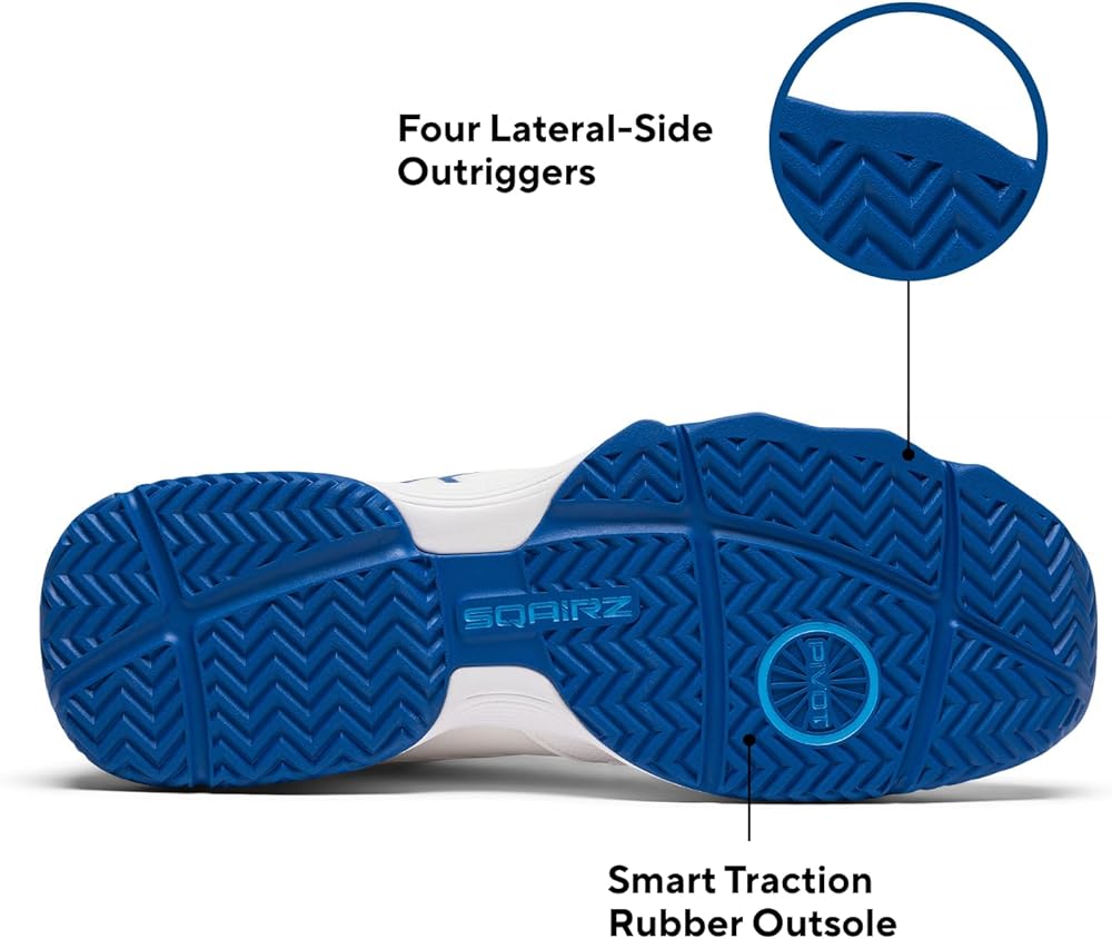 Powerful Stability: Designed in collaboration with Elite Pickleball Professionals, the XRZ shoe offers stability through its advanced Smart Traction outsole. This feature provides superior grip on various court surfaces, ensuring players maintain control during lateral movements and high-speed plays. Also, four lateral outriggers assist during aggressive movements, while forefoot pivot points let you pivot smoothly for quick, effortless cuts.