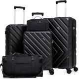【5 Piece Luggage Set】Luggage sets include a 28-inch large suitcase, 24-inch medium checked luggage, 20-inch carry on luggage, extended duffel bag, and a toiletry bag. The duffel bag features a back sleeve so you can conveniently attach it to the retractable luggage handle.