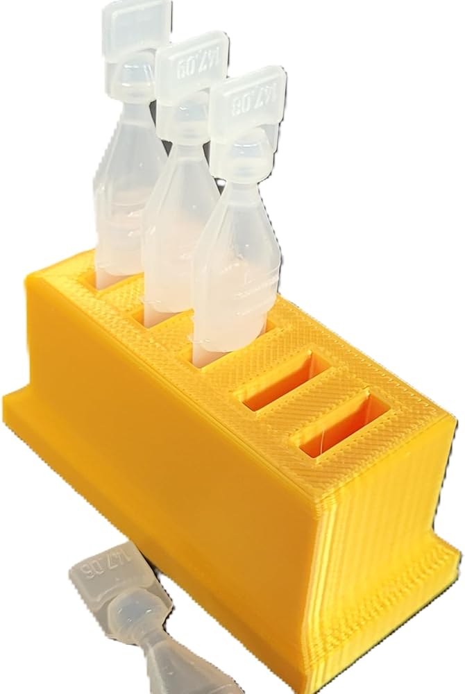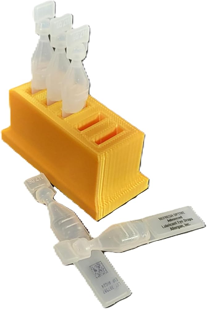 Holds 5 disposable eye drop vials per holder - Designed to hold and fit thicker drop vials.