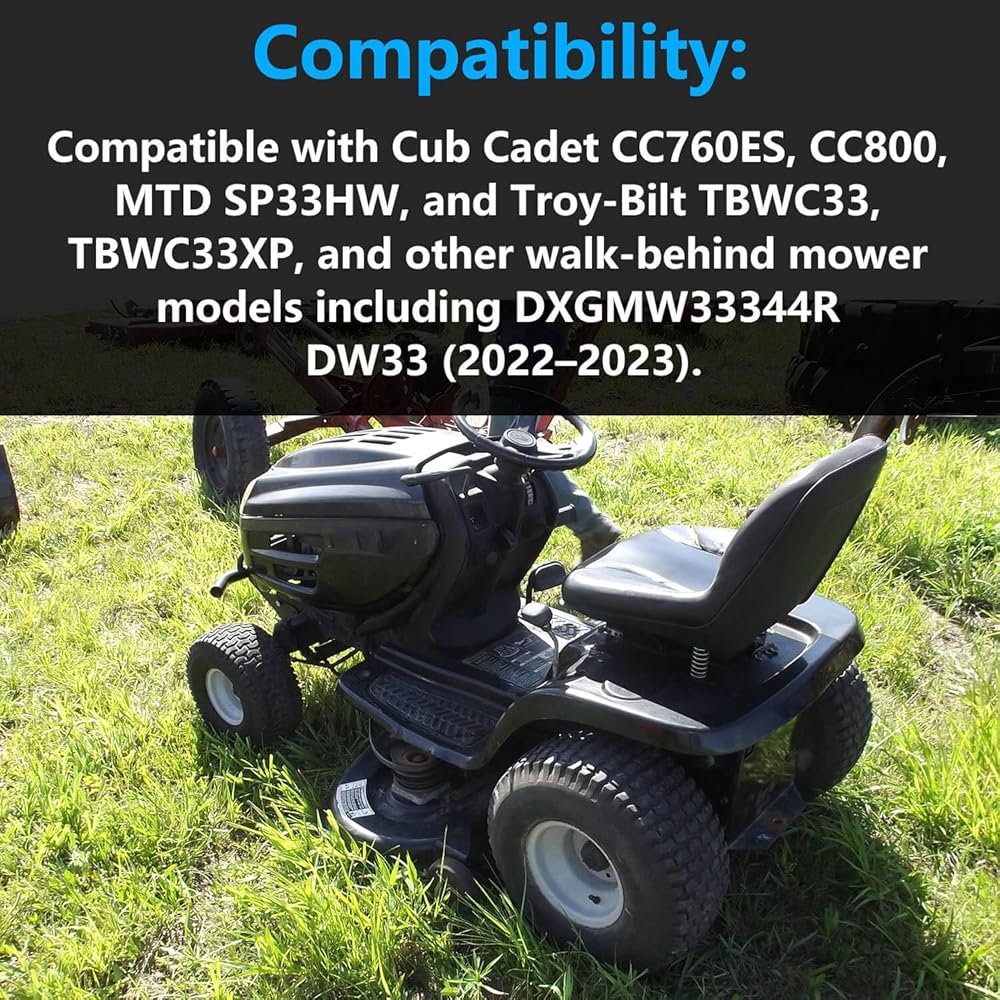 Compatible With: This wheel clutch cable is compatible with Cub Cadet CC760ES, CC800, MTD SP33HW, and Troy-Bilt TBWC33, TBWC33XP, and other walk-behind mower models including DXGMW33344R DW33 (2022–2023).