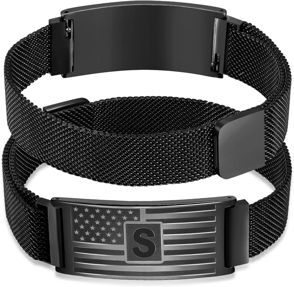 DuoDiner Easter Basket Stuffers -Initials Bracelets for Men Boys,A-Z Capital Letters American Flag Stainless Steel Bracelet Jewelry Gifts for Men Boys Kids Son Grandson Brother Dad Husband