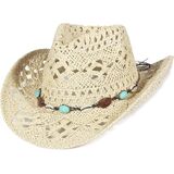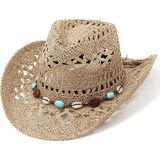 STYLISH COWBOY HAT:---Roll up brim straw cowboy hat,summer women girls cowgirl beach hat,with shell, emerald, black gem hat band, elegant and advanced, you are the most shining star in the crowd.