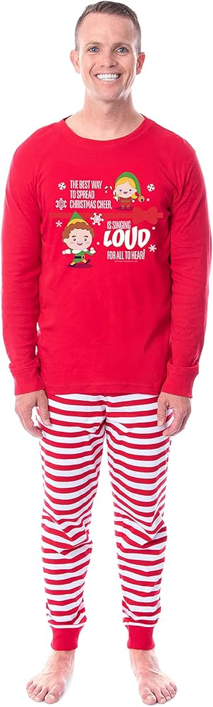 CLASSIC DESIGN - This pajama tight fit features a chibi of Buddy The Elf and the character known as Jovie with the words "The Best Way to Spread Christmas Cheer, is Singing Loud for All to Hear."