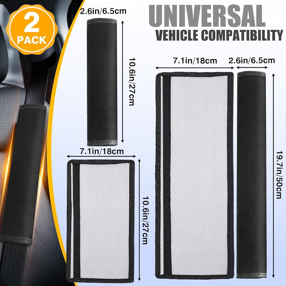 Universal Vehicle Compatibility -- Includes 2PCS seat belt shoulder pads, they fit various models such as sedans, SUVs, pickups, trucks, etc. The shoulder pads are soft and comfortable, suitable for all ages, relieving shoulder pressure and making you feel relaxed on every journey