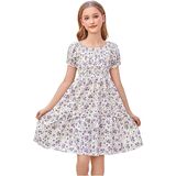 فستان صيفي للفتيات من Floerns بوهو مطبوع عليه زهور بأكمام قصيرة على شكل حرف A وحاشية مكشكشة