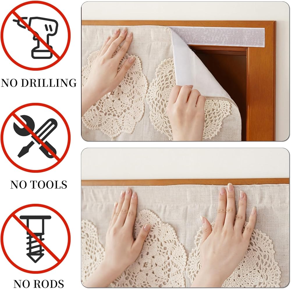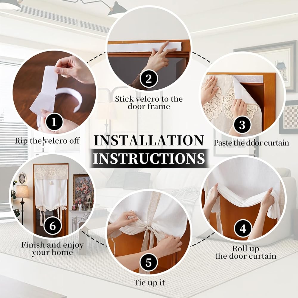 CONVENIENT INSTALLATION: Sticky stickers on top which is easy using on doors or windows without rod. You can tie the curtains with straps for sightseeing or untie the strap for privacy. The height of the straps can be freely adjusted