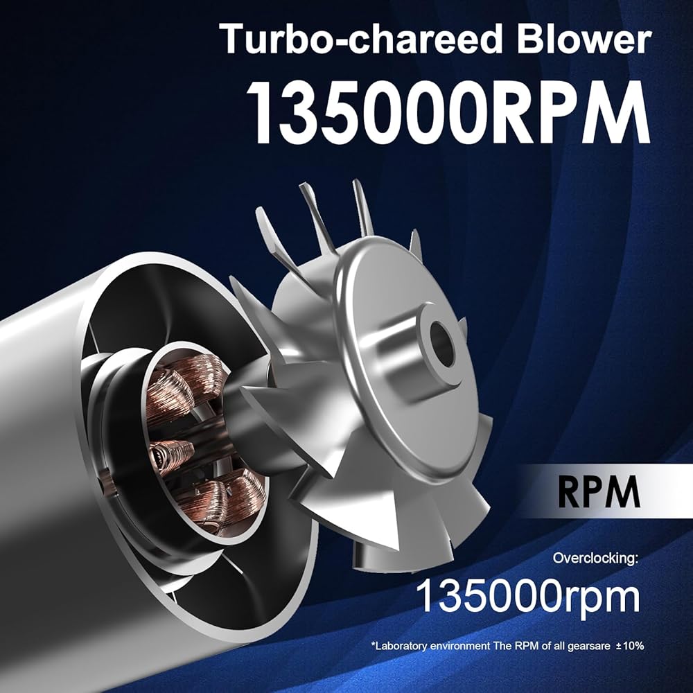 Compact and Portable: The jet dry blower with a Type-C charging port supporting 15W fast charging, making it a convenient companion for various activities. Whether you're drying your car after a wash, cleaning hard-to-reach spaces, or enjoying a camping trip, this compact blower is ready to go wherever you are.
