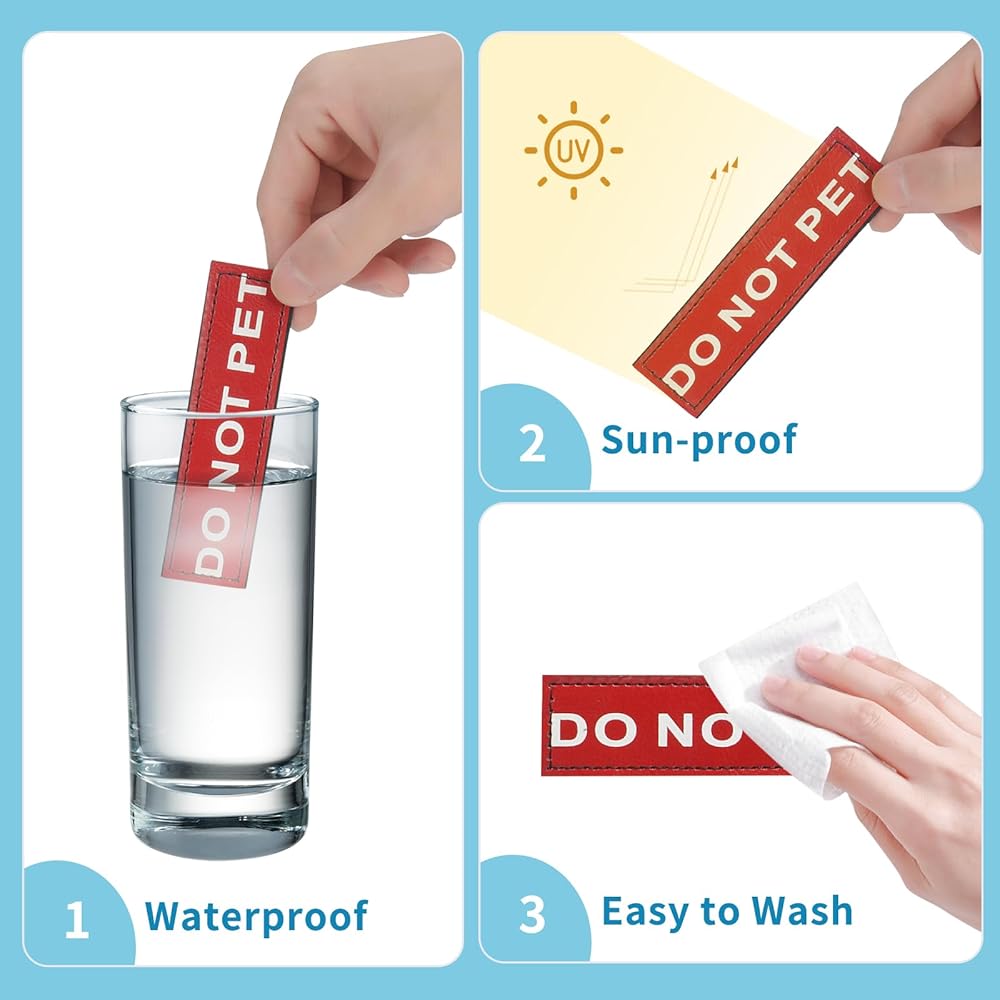 3.【Hook & Loop】 Sewn hook backing attaches securely to any loop-lined vest/harness/collar. Effortlessly switch "Emotional Support" to "Do Not Pet" for different environments—no tools needed. Reusable design adapts to parks, stores, or therapy visits.