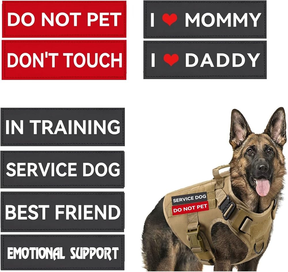 1.【8-Pack Dog Patches Set】Including "Service Dog", "Do Not Pet", "In Training", "Emotional Support" and heartwarming messages like "I Love Mommy/Daddy"—8 diverse patches let you instantly switch between service identification ("Service Dog in Training") and pet personality styling. Perfect for daily walks, training sessions, or holiday-themed accessorizing.