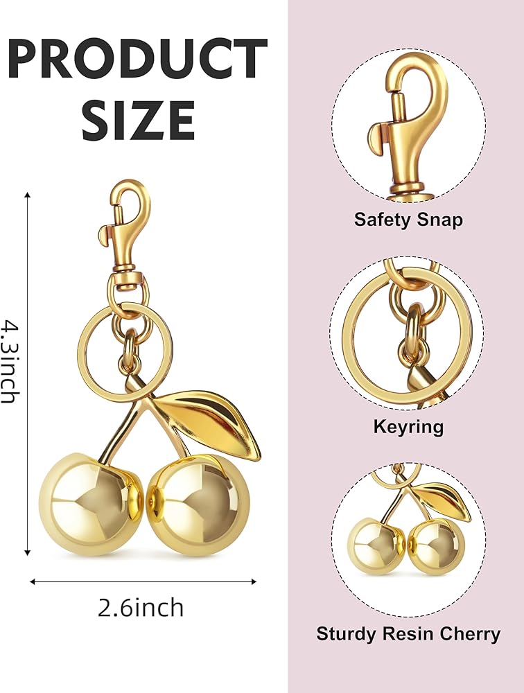 Purse Charm: Purse cherry charm keychain features a unique design,shaped like a realistic cherry complete with a glossy finish, bag charms making your bag more attractive and stylish