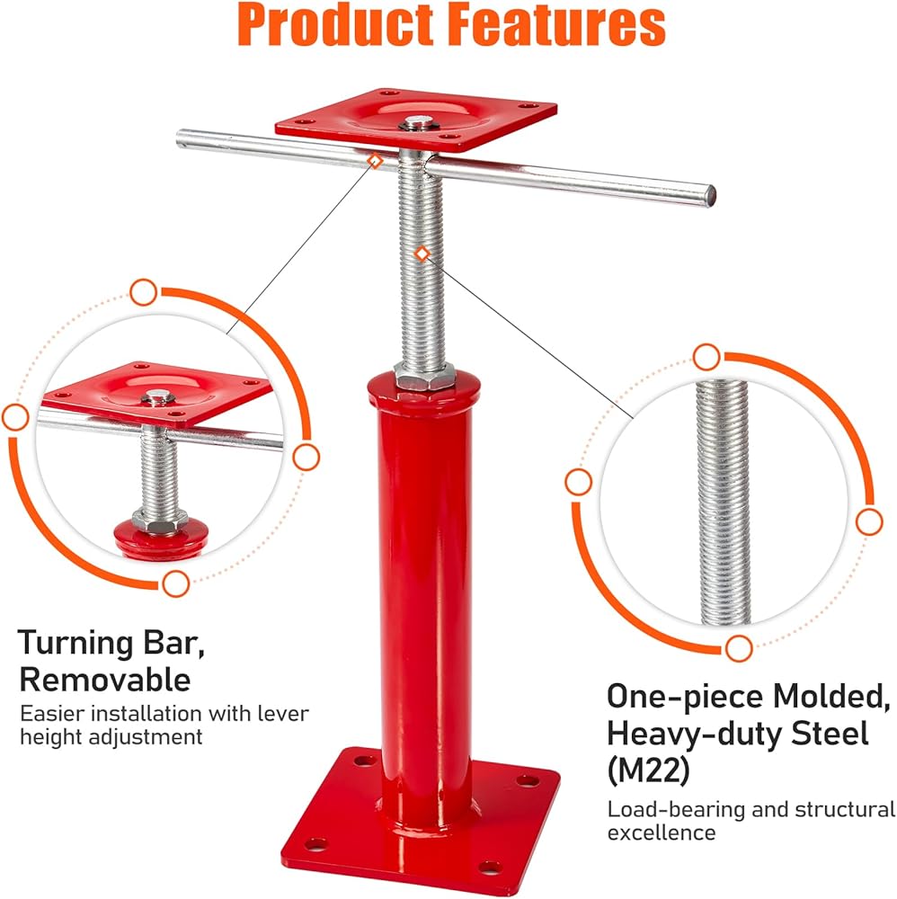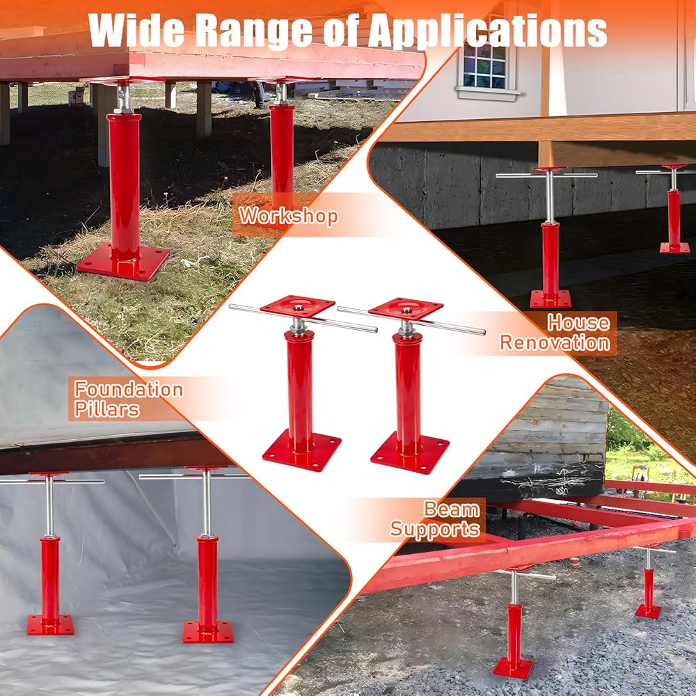 Heavy Duty Support: Our basement floor jack is built from tough Q235 steel. Each jack handles up to 11023 lbs with ease. M22 safety locking screws and pins for added strength and safety