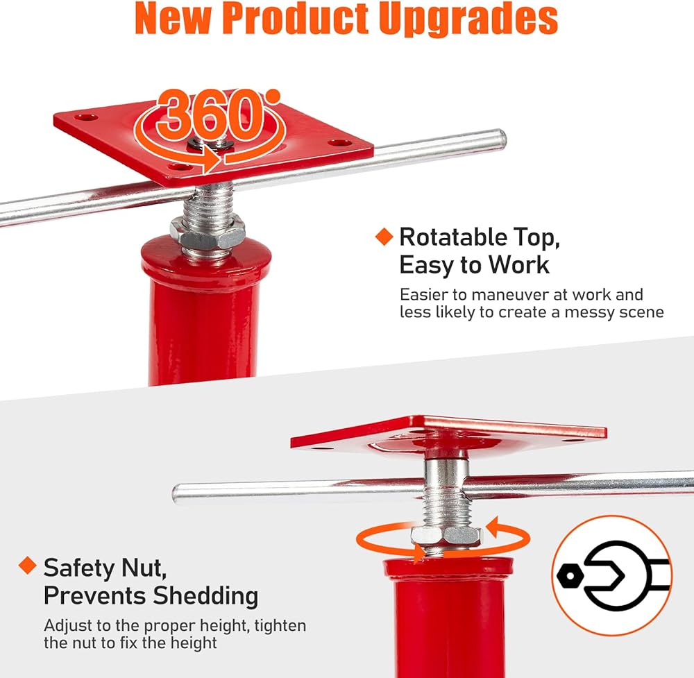 Upgraded Design for Top Swivel: When you turn the screw to extend the jack, the swiveling top plate ensures flexible alignment, making it highly adaptable for tight or uneven spaces