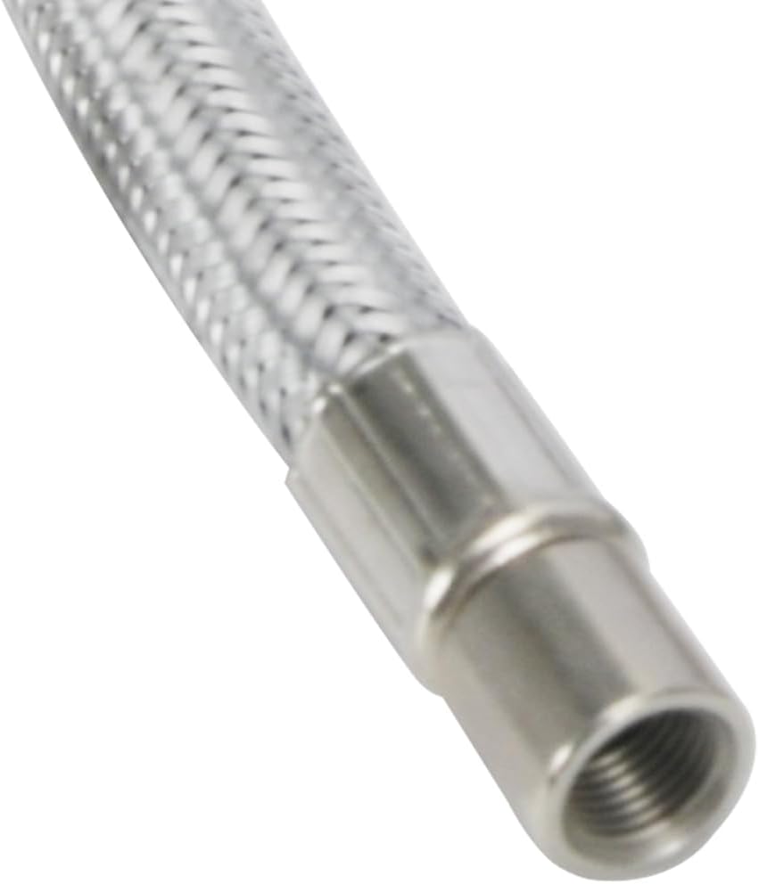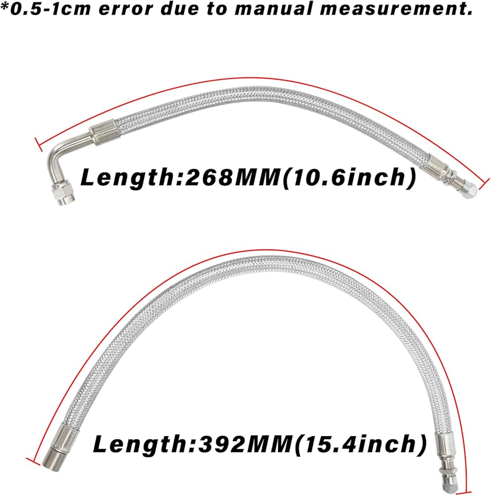【MATERIAL】: Made of stainless steel braided hose, sturdy and wear-resistant, with toughness, supporting passing through the wheel hub from different angles, not easy to break or leak, fuel efficiency and overall driving safety.
