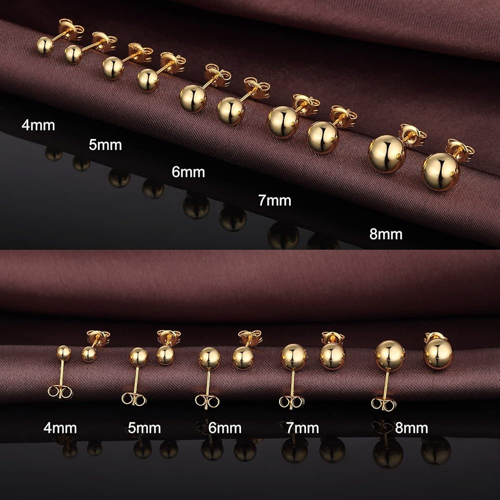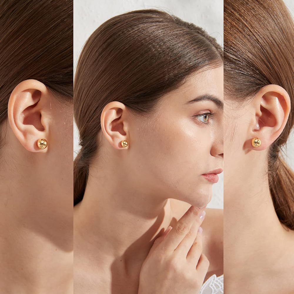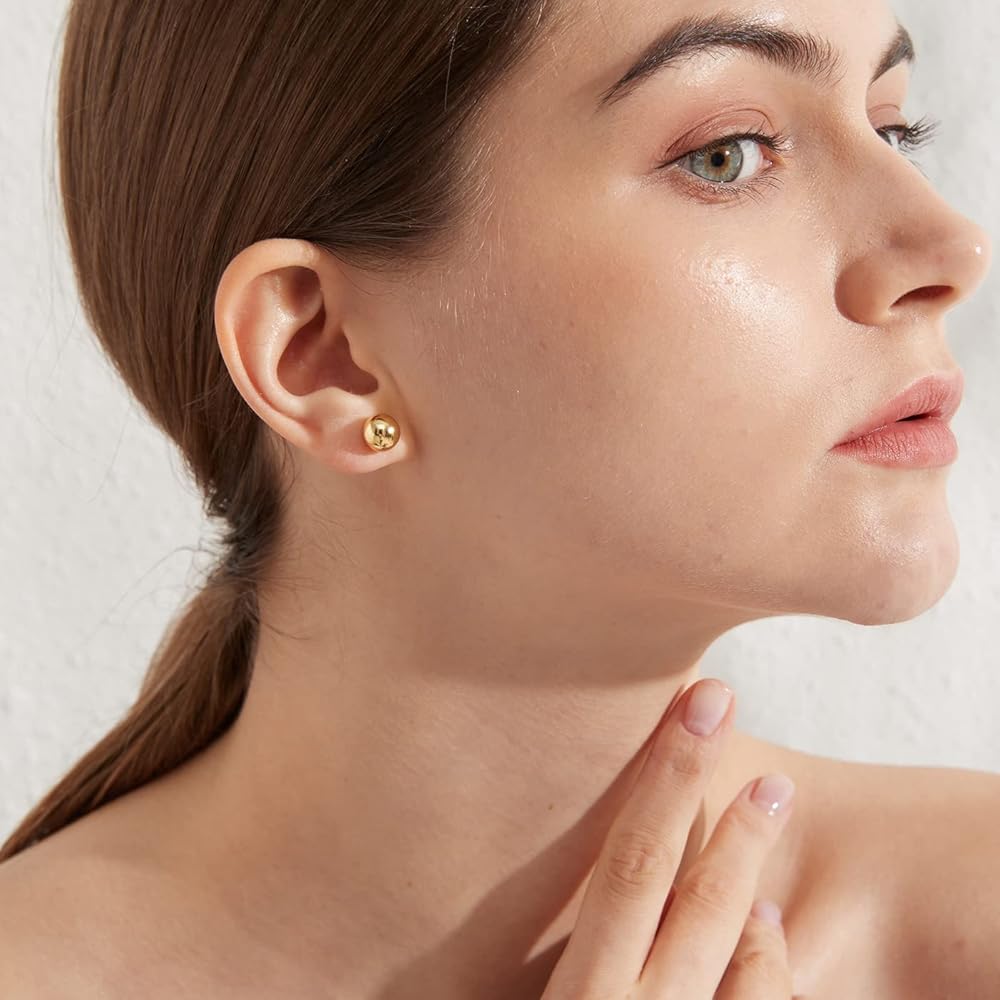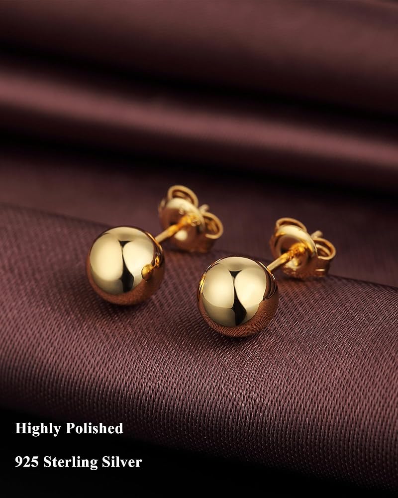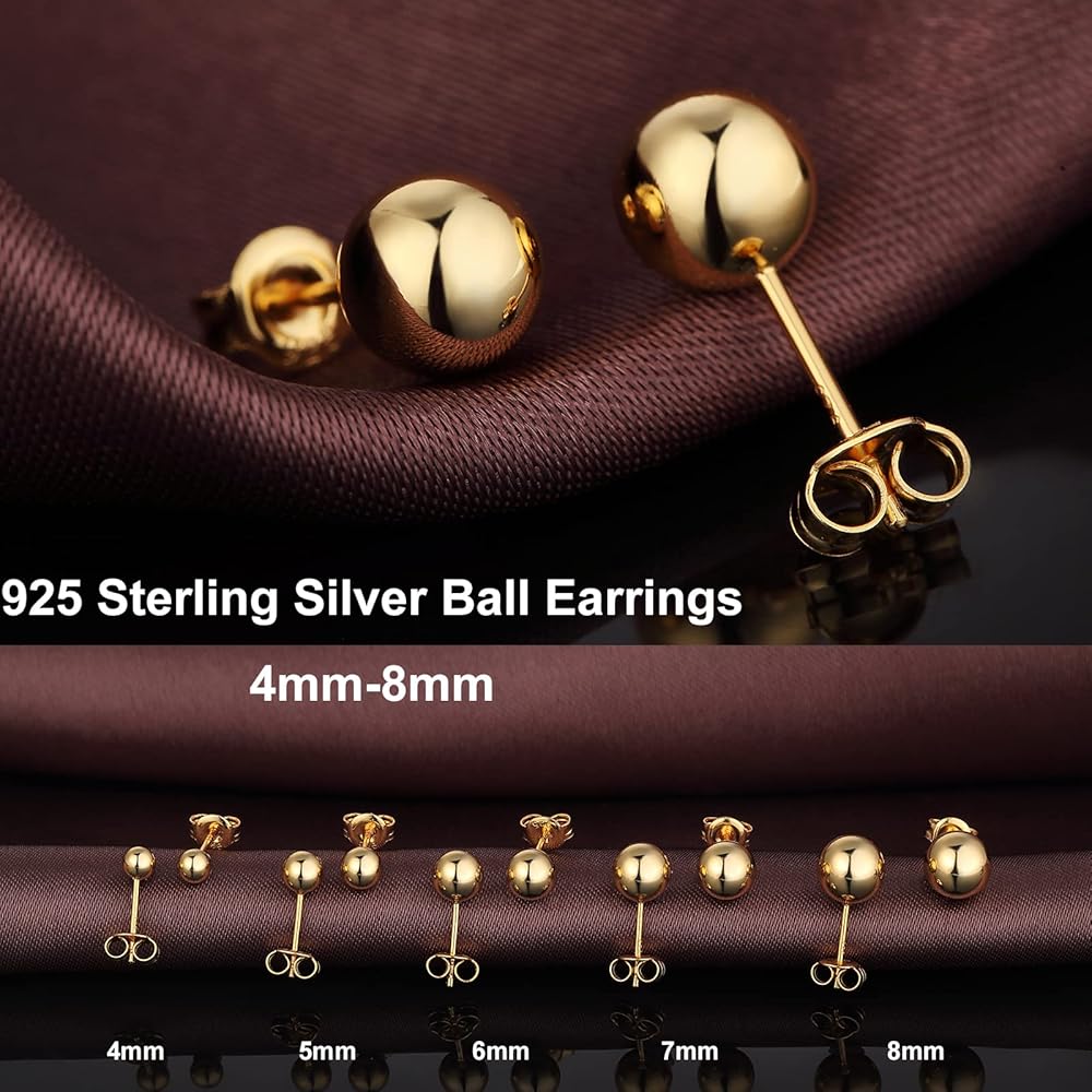 Style: Classic 925 Sterling Silver and Gold Plated Ball Stud Earrings for Women Men.