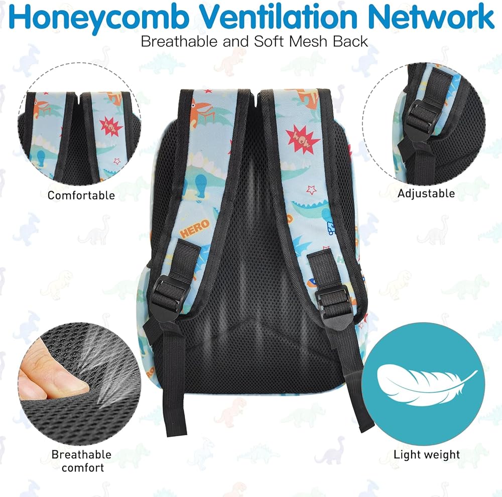 EYE-CATCHING DINOSAUR CARTOON PICTURES: Backpacks with vivid, fun and engaging cartoon pictures of tiny dinosaurs are sure to be a hit with kids. These vibrant designs not only add fun but also encourage your kids to show their unique personalities.