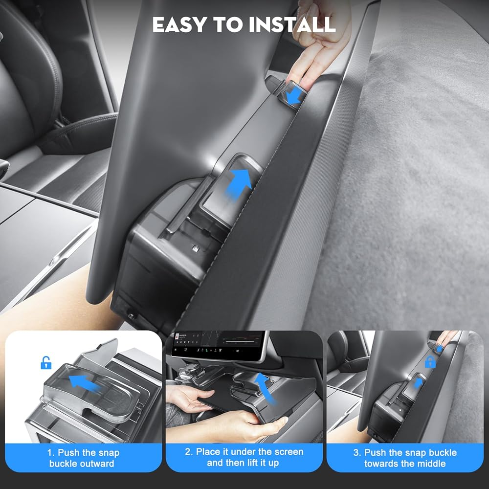 Hidden Design: Tesla Model 3 Model Y behind Screen central control Tray is a space-saving storage tray.It perfectly fits the size of the tissue box,and can also hold small objects such as watches,sunglasses,keys,etc. Applicable model: ONLY fit 2021-2023 Tesla Model 3 and 2021-2025 Model Y (Not fit 2025-2026 New Model Y Juniper)