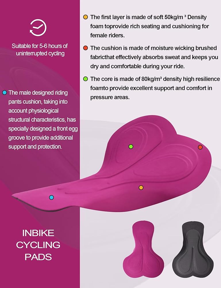✔【4D High Density Sponge Padded】The high-density sponge pad is used to effectively absorb sweat during cycling to keep dry, and the women-only cushion is more in line with the physiological structure to meet the 6-hour continuous riding, bringing effective support to release pressure