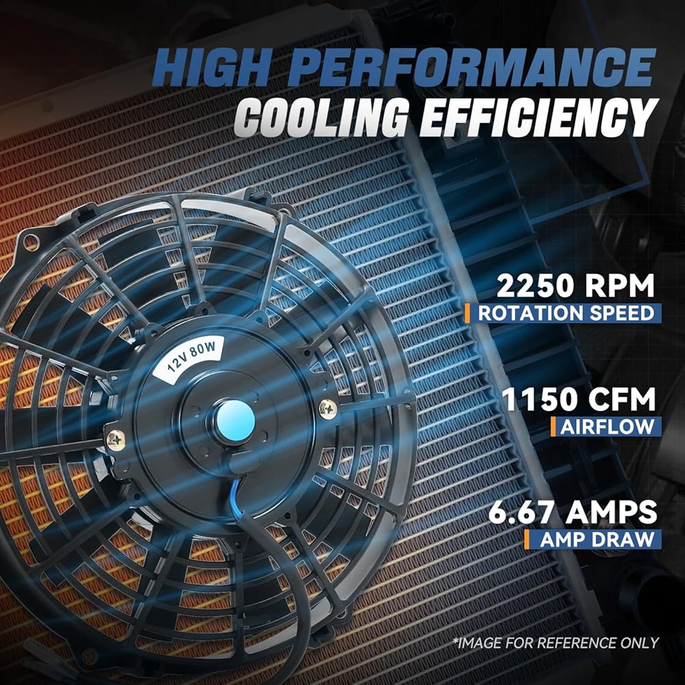 Brilliant Performance - Come with set of [2] high performance slim design radiator cooling fan, can provide excellent engine bay clearance and brings more space for engine modification, to cool down the entire engine bay, including radiator, A/C system, intercooler, oil system and transmission.