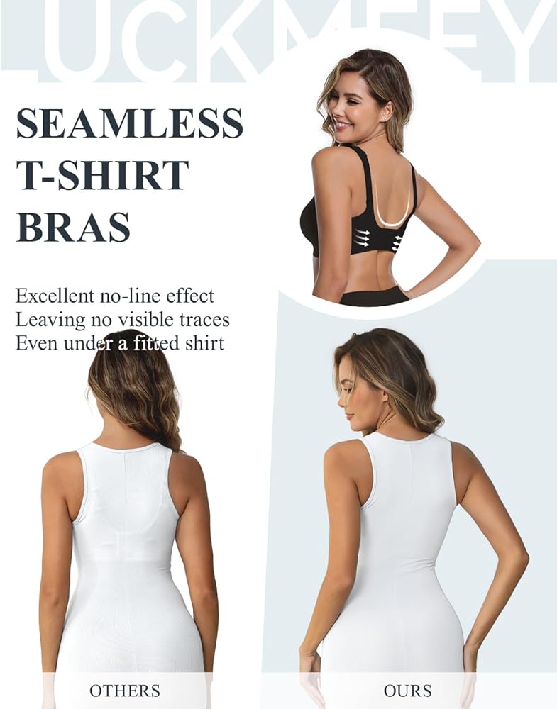 INVISIBLE U-BACK AND CROSSABLE STRAPS: These wireless bras for women come with adjustable elastic straps that you can cross to achieve a better lift, paired with four rows of three-button hooks that allow you to customize the fit to your body shape. With a U-back design and wide side straps, these womens bras help to conceal underarm bulges and back fat for extra support and a smoother silhouette, making it one of the best bras to hide back fat.