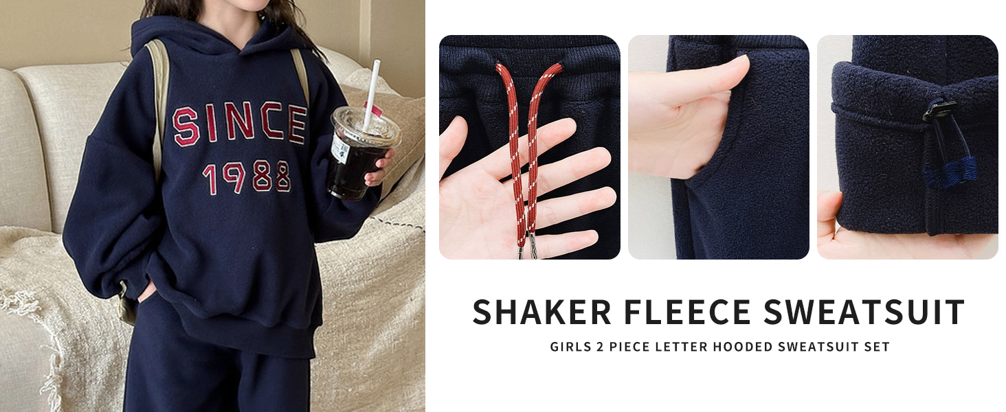 Girls 2 Piece Letter Hooded Shaker Fleece Sweatsuit Set Sweatshirt and Sweatpants Clothing Sets Tracksuits